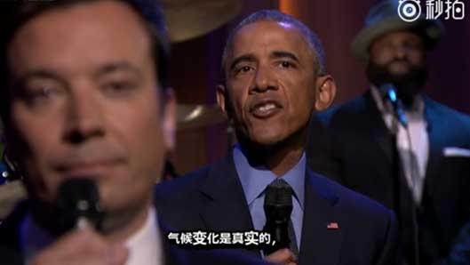 奥巴马联手脱口秀主持人 热唱总结8年总统工作