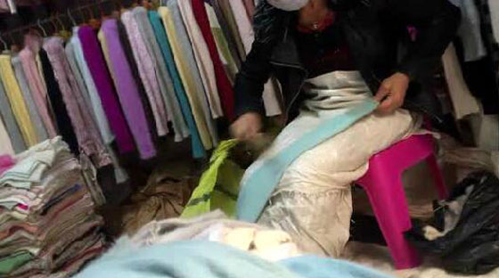 这段暗访视频中,一位旧衣服行业从业者亲口说道:“带血的(衣物),人家用洗衣机洗一下就行了,有的从死人身上脱下来的…。”当记者问及是否消毒时,一位从业者笑道,“消个屁,消毒”。