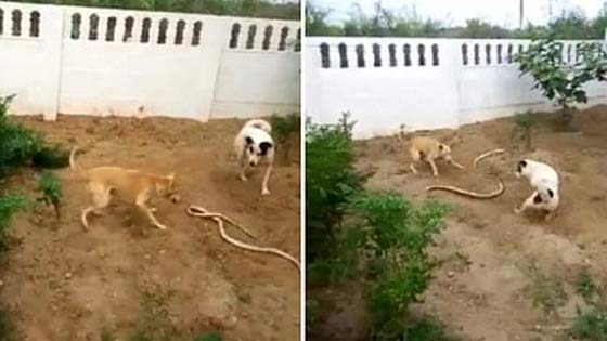 实拍狗狗大战1.5米长巨蟒 将其撕咬两段