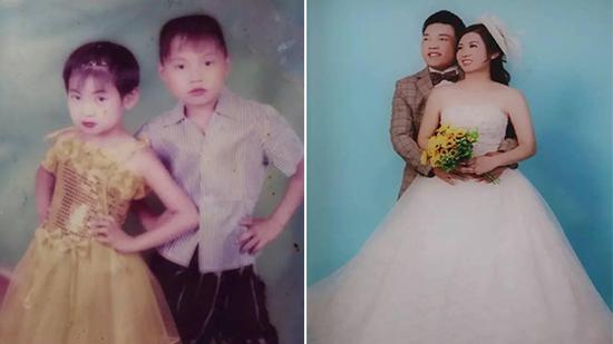 高天的妈妈黄萍告诉笔者,19年前,高天、高林两家都经营照相馆生意。一家在盐山韩集镇,一家在盐山千童镇。由于两家私交甚好,一次,双方家长突发奇想,让5岁的高天当小“新郎”,4岁的高林当小“新娘”,拍了一组儿童“结婚照”。照片洗出来后,两家都被孩子们天真、可爱的表情逗乐了,并各自将照片保存了起来。