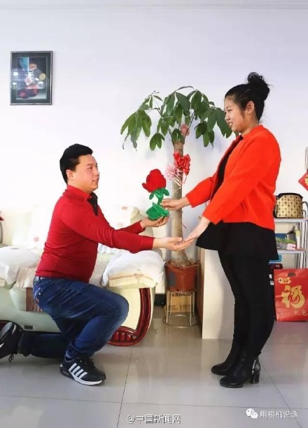 男孩儿穿着白衬衫,打着红色的蝴蝶结,女孩儿穿着黄色带花的连衣裙,两人摆出各式各样的姿势,在镜头里“甜蜜相伴”——每次看到19年前的这组“结婚照”,高天、高林都露出幸福的微笑。2月5日(农历正月初九)这天,效仿当年的甜蜜姿势,高天、高林在家人的帮助下,重新拍下了一组照片。这次,虽然二人身着便装,也没有华丽的背景,但对他们来说却有着特殊的意义。