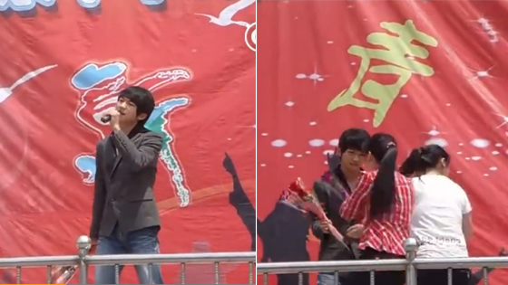 某校园十佳歌手比赛现场 开口跪!