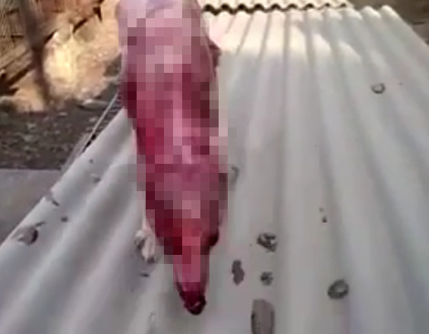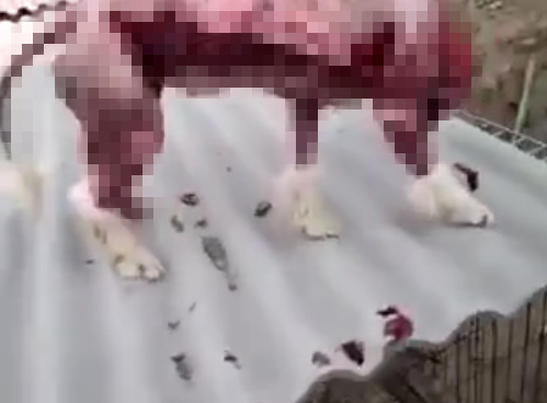 据悉,事件最初是有狗主在一个名为“东莞阿拉斯加总群”的群组内分享,狗主更笑称“这狗酷不?”“我剥了皮原来这么瘦”。从照片所见,该狗全身毛皮被剥去,露出粉红色的血肉,一直在铁皮顶上蹒跚行走,已被主人遗弃。