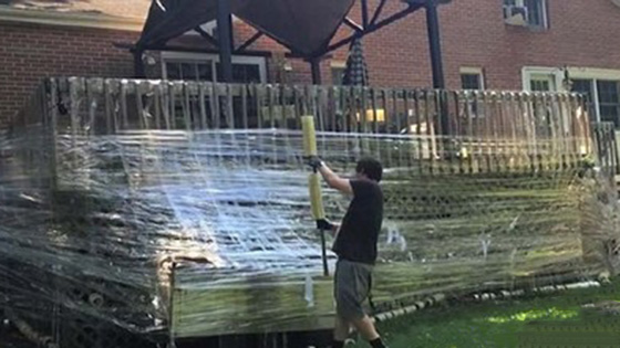 熊孩子趁爸妈不在 家用胶带把房子缠起来