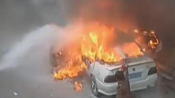 熊孩子往车内扔鞭炮 半小时烧毁一台轿车