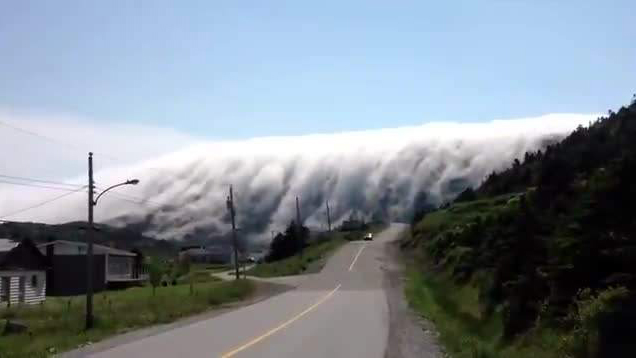 加拿大网友拍到云瀑滚滚而来 震撼如科幻大片