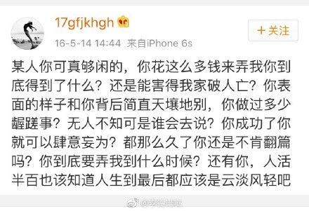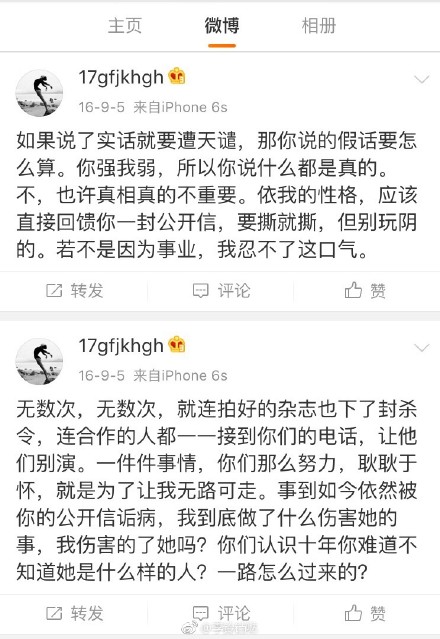 10张尤其恐怖的是,这个17gfjkhgh疑似张馨予小号的微博,里面暴露出了很多惊人的消息,尤其是暗指范冰冰和李晨多次对自己暗地里的打压。那么张馨予的这个微博小号里都有哪些内容呢?
