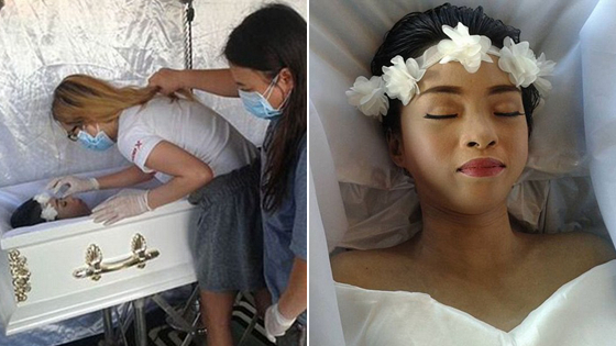 女大学生躺进棺材体验死亡 事后嚎啕大哭