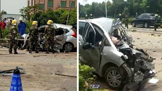 湛江发生重大车祸 小车瞬间报废致5死2伤