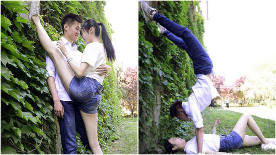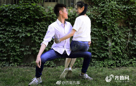 济南舞蹈毕业生秀恩爱 高难度姿势惹人艳羡