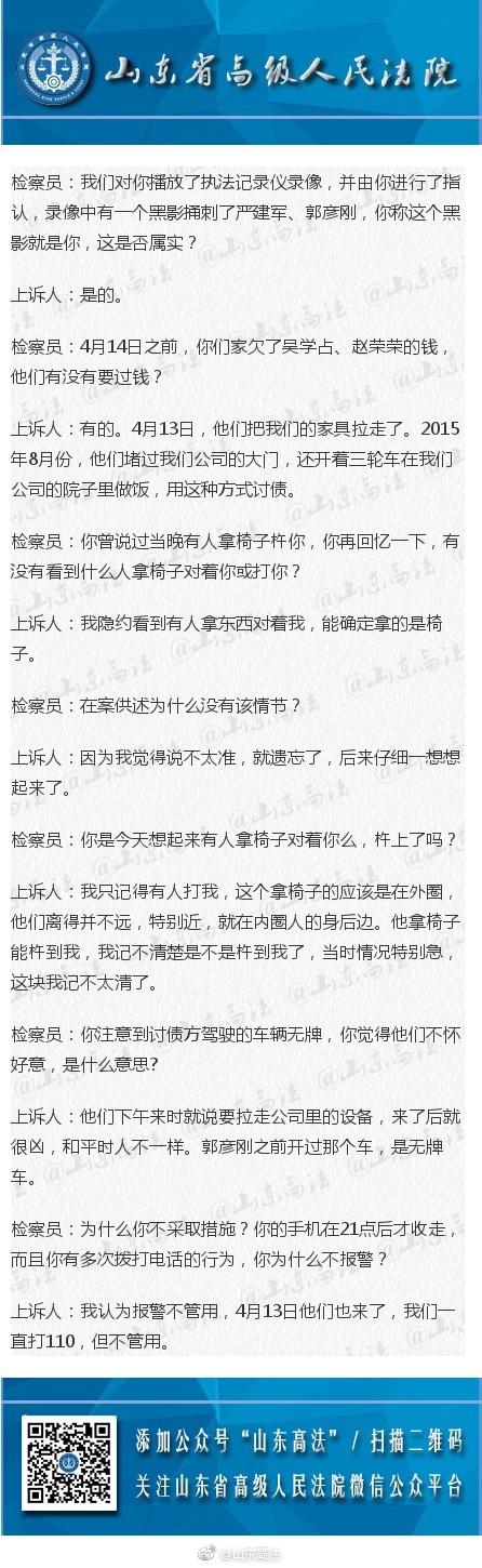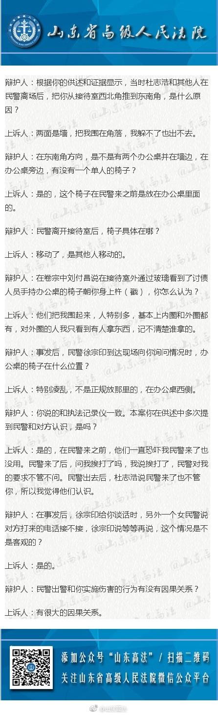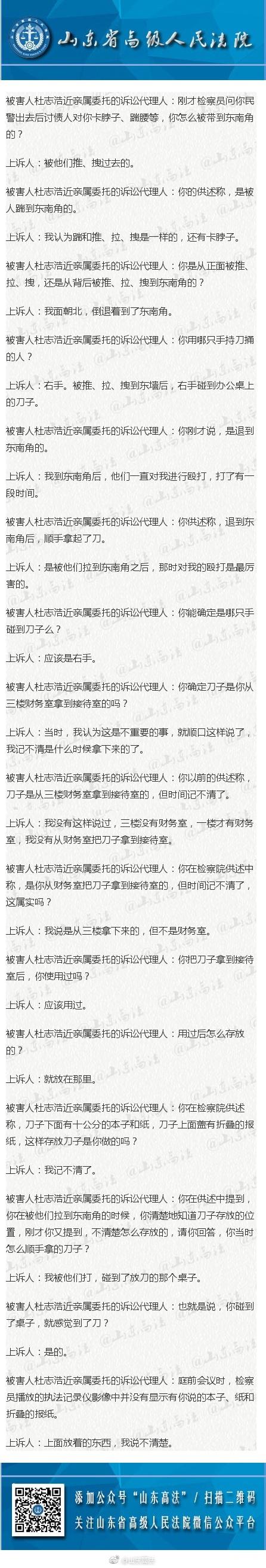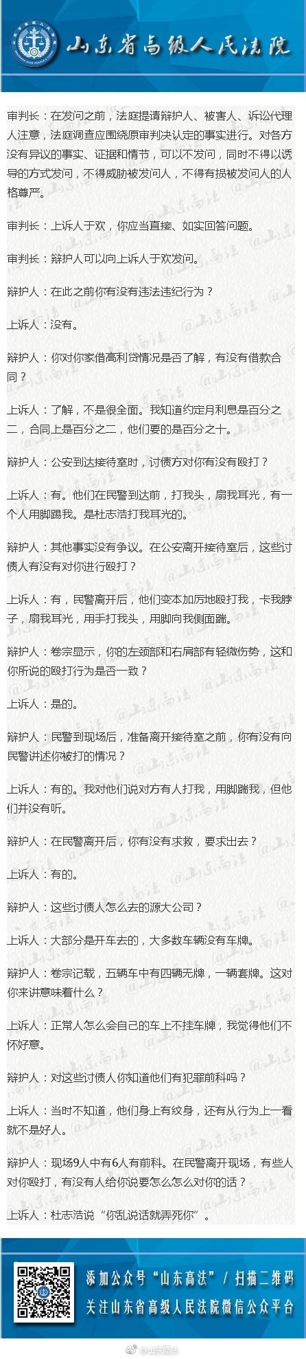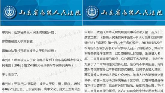 8时34分左右,审判长宣布:山东省高级人民法院现在开庭。庭审中进行了对上诉人发问、讯问。