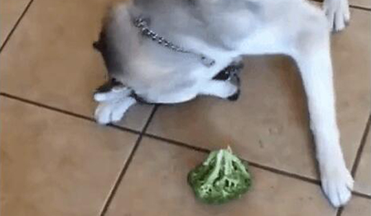 当哈士奇遇到西兰花后 二哈的世界完全不懂