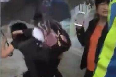 实拍佛山暴雨 女校长冒雨背学生进校