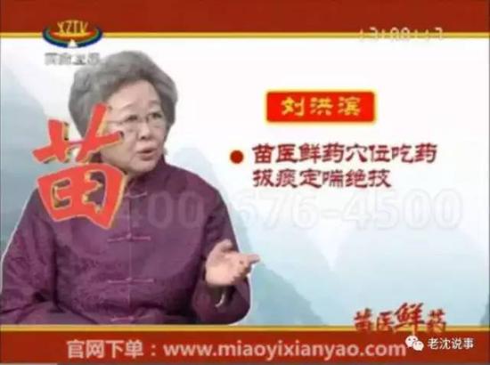 从甘肃卫视,转战邻省青海:青海卫视在《药王宝典》里,她衣服都没换,摇身一变再次成为老苗医传人,主推“苗家活骨方”。从青海出来,她来到了沿海:东南卫视。摇身一变成了——老院长,换上“清纯”的服装,卖自己研发的“老院长祛斑方”。告别东南沿海,她开始闯关东:都市频道。在东北,她换上蒙古装,卖“蒙药心脑方”时,她是八十高龄的蒙医后人。如此低劣的医药广告,之所以能够在如此大庭广众之下招摇撞骗,而且还能够登上国内这么多家主流媒体,实在令人感到惊讶。