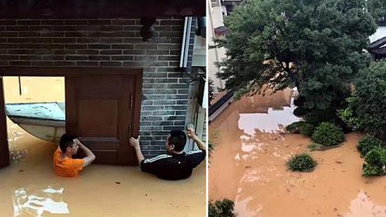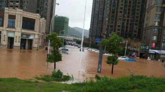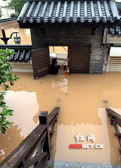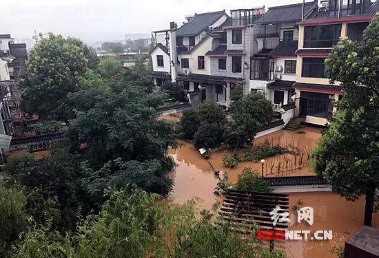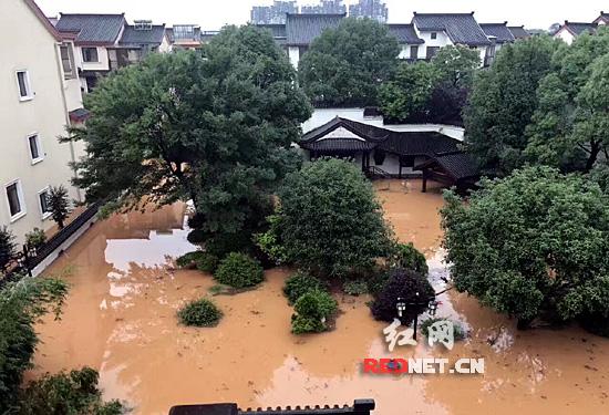 暴雨致长沙城区多处路段积水,部分街道、住宅区被淹,城市公园出现山体滑坡等险情。长沙河西的汀湘十里别墅小区已俨然变身“水城”,一些业主住房进水约1米深,靠撑船出行;湖南烈士公园等景区从1日起紧急闭园。