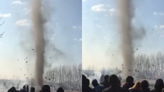黑龙江公墓龙卷风视频 铁皮纸屑满天飞