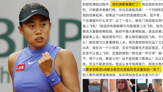 中国网球女子运动员张帅微博投诉美联航