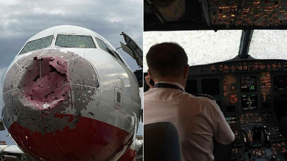 机头被砸扁玻璃窗受损!看机长盲降现场视频