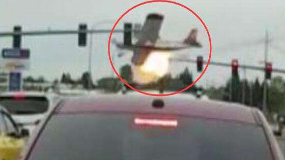 11张飞机从天而降撞上红绿灯爆炸 飞行员毫发无伤