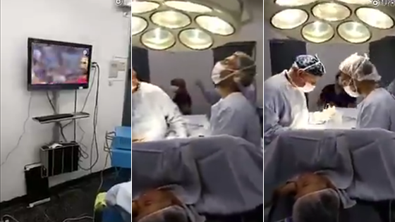 病人手术台昏迷 医生却拿着手术刀在看球