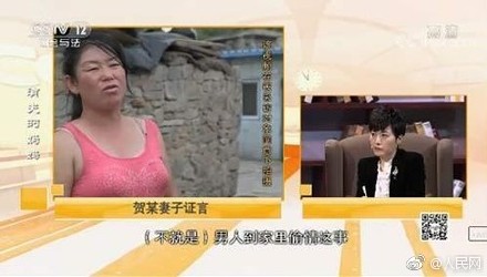 妻子出轨被他捉奸在床 抛夫弃子离家出走6年未有音讯。由于自己的疏忽,证据不足,无法将妻子绳之以法后,闫彩斌却又发现妻子背着他和其他男人偷情。“刚开始我只是怀疑,后来我在招待所将她逮着了。我看到她们躺在一张床上。我妻子脱得只剩下一个胸罩,其他什么都没穿。而那个男人贺某则穿着衣服。他们不肯承认,这事也就一直拖着,直到他们私奔,离家出走。到现在已经有6年杳无音讯了。”闫彩斌如此透露说。他称,妻子找不见后,他去过妻子的娘家,发现丈人丈母娘一家也搬走了。坊间有人传言妻子和那个情夫贺某有了新家庭,还生了一个孩子,在过年时曾带回来过。对此,贺某的妻子则接受《律师来了》节目组采访时称,她去榆林做完剖腹产手术回到家中,发现丈夫贺某和闫彩斌的妻子同在屋内,贺某只说他们是朋友关系。再后来,贺某也跟着闫彩斌的妻子一起消失。“这些年,他(贺某)再也没回来过。我不清楚他们是否生了孩子。我家的户口上,只有我和贺某生的两个孩子,我将户口给闫师傅看过了。”镜头里,贺某在农村老家的妻子如是说。