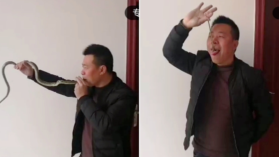 慎点!实拍“蛇王”现场表演“生吞活蛇”