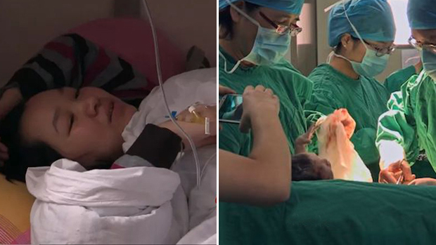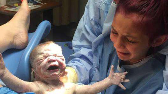 女儿为妈妈接生 抱着弟弟对医生说好想生育