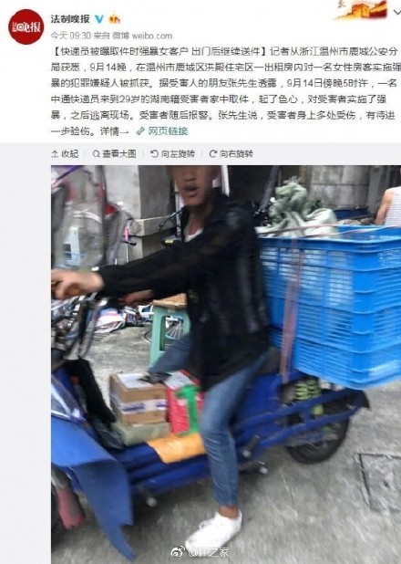 中通涉性侵快递员供认强奸未遂 目前已被刑拘