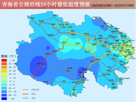 G109京拉线,K2060-K2097路面有积雪,K2098-K2110路面积雪比较严重,龙羊峡岔口至共和部分路段路面湿滑;大水桥西至旺尕秀路段正在降雪。