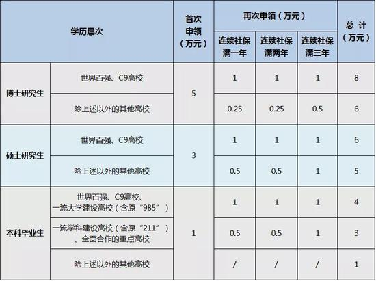 补贴为一次性生活补贴。具体标准为:博士研究生5万元、硕士研究生3万元、本科毕业生1万元。