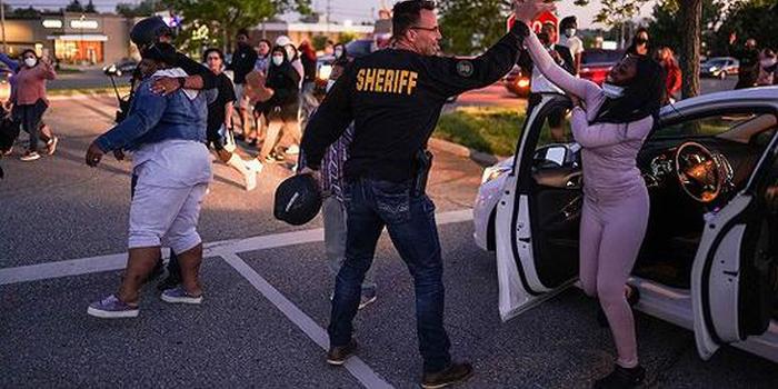摘头盔扔警棍 美国警长带头加入示威队伍:和平游行不应变成抗议示威!