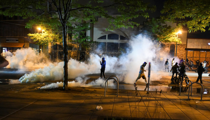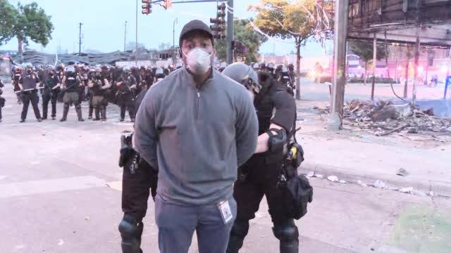 5 月 30 日,明尼阿波利斯的抗议活动持续进入第五天。据美联社报道,示威者在该市一家购物中心的顶层纵火,一群人向警方投掷硬物;在激烈的对峙中,甚至有示威者向警方开枪。不过,当晚抗议群体受到强有力的镇压:晚 8 时,市政部门颁布的宵禁令正式生效,执法部门在国民警卫队的协助下,动用非致命武器强行驱散示威人群,逮捕数十名违反宵禁的示威者。