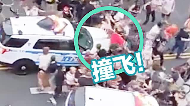 撞倒一片!纽约警察受阻拦猛踩油门 警车急加速冲入抗议人群