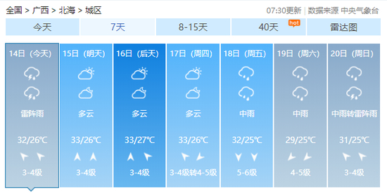 北部湾海面:今晚到明天,小到中雨,东南风4~5级,雷雨时有短时大风;16-17日,多云有阵雨或雷雨,偏南风4~5级。