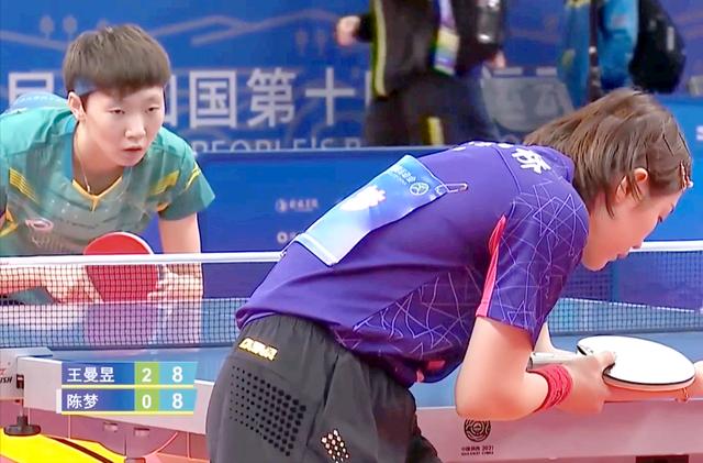 9月18日下午,全运会乒乓球比赛迎来了一场焦点大战,国乒2大奥运冠军名将陈梦(山东)、王曼昱(黑龙江)狭路相逢,展开对决,结果陈梦在多次占据主动的情况下频频丢分,最终0-3惨败,同时也成为了全运会首位输球的国乒奥运冠军!
