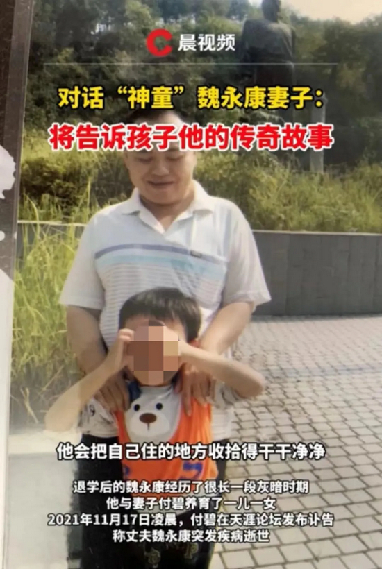 付碧告诉记者,自己和他是结缘于网络。付碧说,“神童”的故事她在网上看过,但两人在一起后,她就再也没关注了,“在我看来,他就是一个普普通通的孩子的爸爸,一个家庭的顶梁柱而已。”