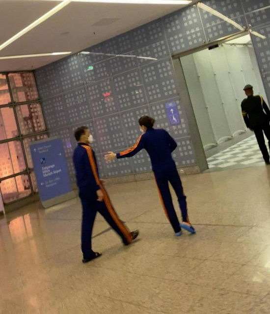 德媒在机场还拍到了泰王身边有一位高挑纤瘦的神秘女子随行,女子穿着的是和他一样的“情侣装”运动服。