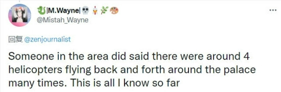 “那一片区域的确有人说过,有大约4架直升机在宫殿周围来回飞行了很多次。目前我就知道这么多。”