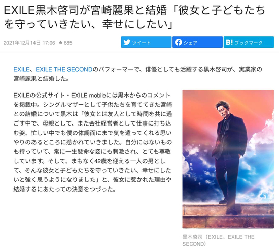 2021年可以说是黑木启司人生中最重要的转折点之一。在12月,他宣布了自己结婚的消息。