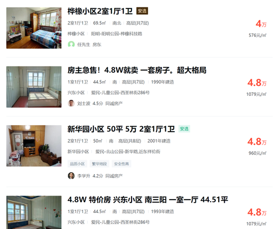 房产交易平台上售价不到5万一套的牡丹江房产