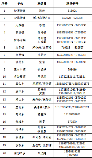 乡镇街道联系电话: