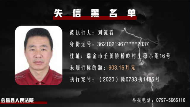 执行案号:(2020)赣0731执2031号