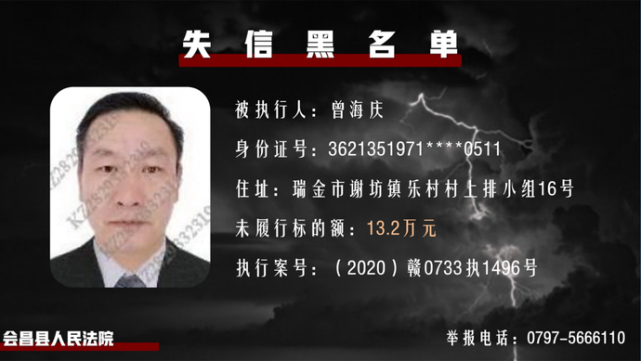 执行案号:(2020)赣0731执2034号