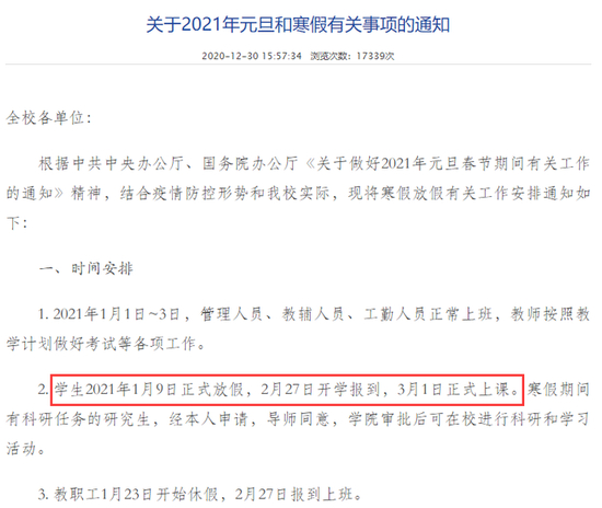 1月6日,南京中医药大学发布寒假及开学时间安排。