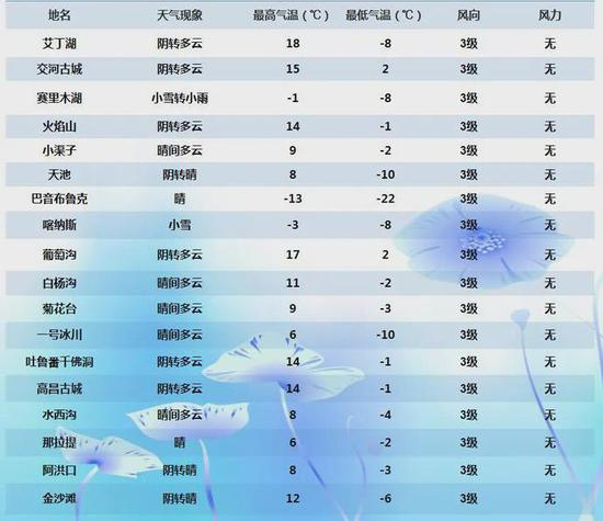 全疆地州首府天气预报