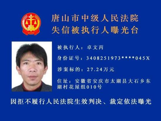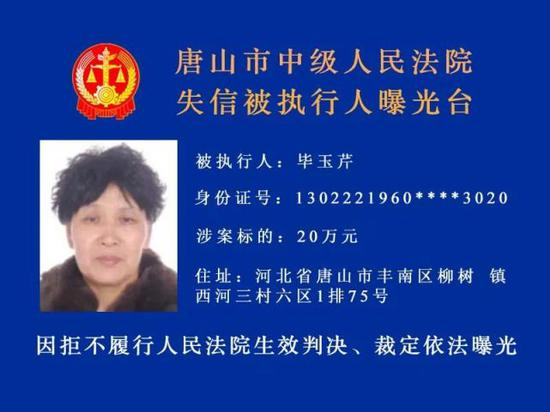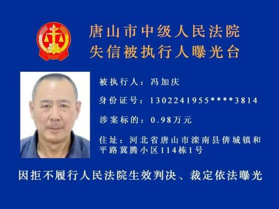 唐山市中级人民法院发布新一期失信被执行人名单↓↓↓