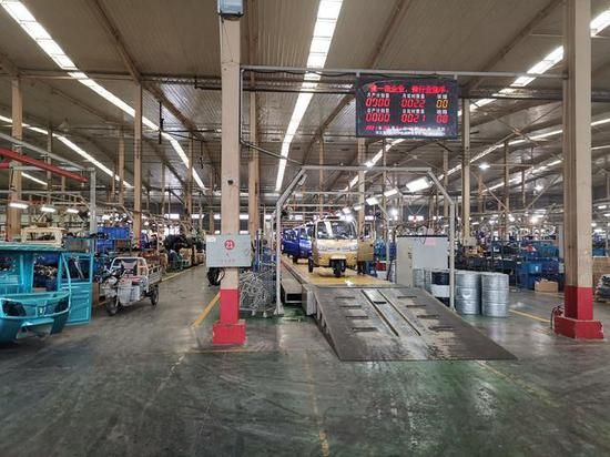 江苏宗申车辆装配车间的流水线。新京报调查组 摄