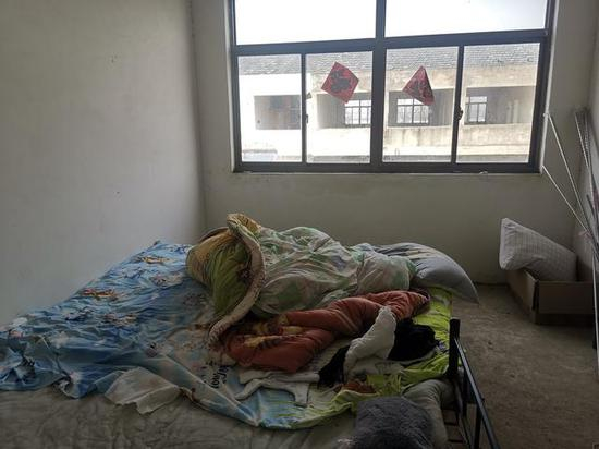 杨家的两层平房还是十多年前盖的,屋里没什么像样的家具,东西凌乱地摆放着。二楼房间里,两张床拼一块,晓燕和孩子们回来了就睡这儿。