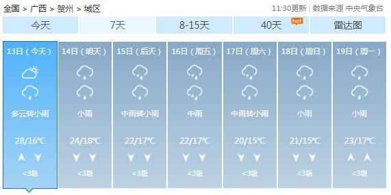 14日,桂北阴天部分地区有中雨,局部大雨到暴雨,其它地区阴天大部有小雨。