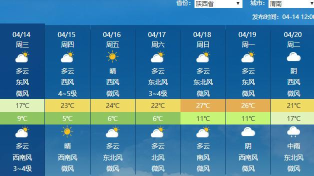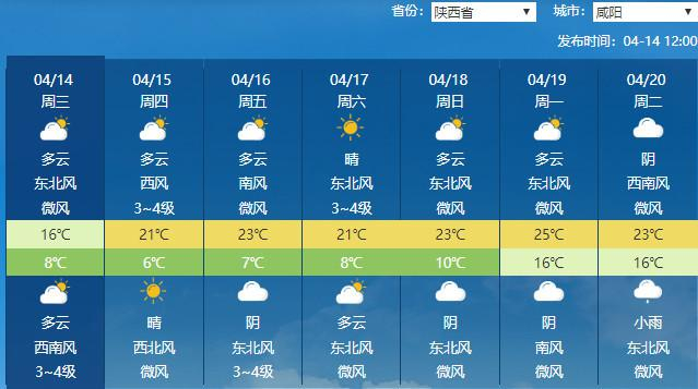 后期天气趋势(4月21-23日):全省阴天有一次小到中雨天气过程。